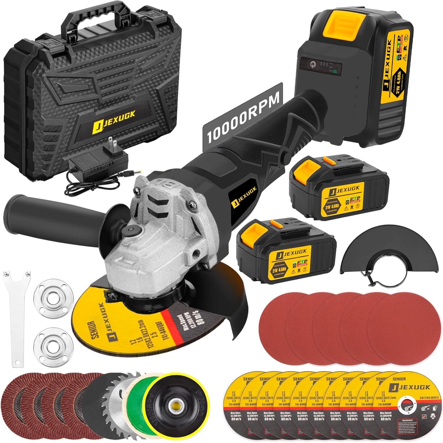 5" Cordless Angle Grinder Kit, 21V 2 x 4.0Ah Batteries Grinders, 10000RPM Brushless Electric Metal Grinder w/ 10x5" Cutting Wheels, Ergonomic Button Position for Reducing Hand Pressur