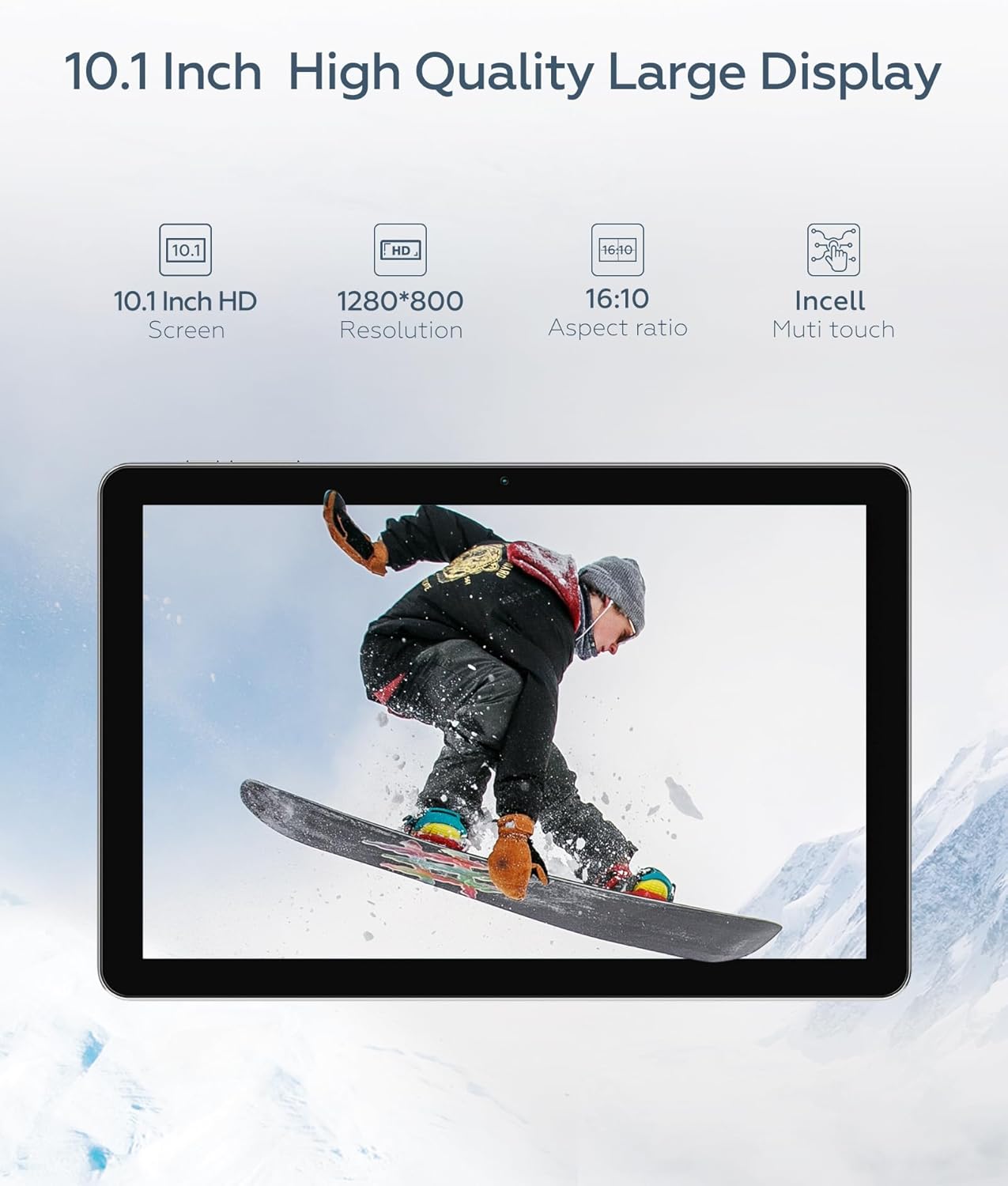 ⭐【Vibrant 10.1" Display + All-Day Battery Life】Enjoy blackview tablet's stunning 10.1-inch display for vibrant visuals. With multi-tasking split-screen apps and a user-friendly desktop setup, access your favorite apps faster than ever. The 5100mAh battery lasts over 10 hours for browsing, streaming, or gaming. USB Type-C and a 3.5mm headphone jack allow charging and listening at the same time.
