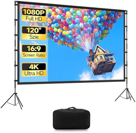 Projector Screen Outdoor, Projector Screens with Stand Portable 120" Foldable Projection Screen, KSAN 10 Feet Indoor Home Theater Movie-Screen with Carrying Bag for Backyard Movie Night, Party, Games