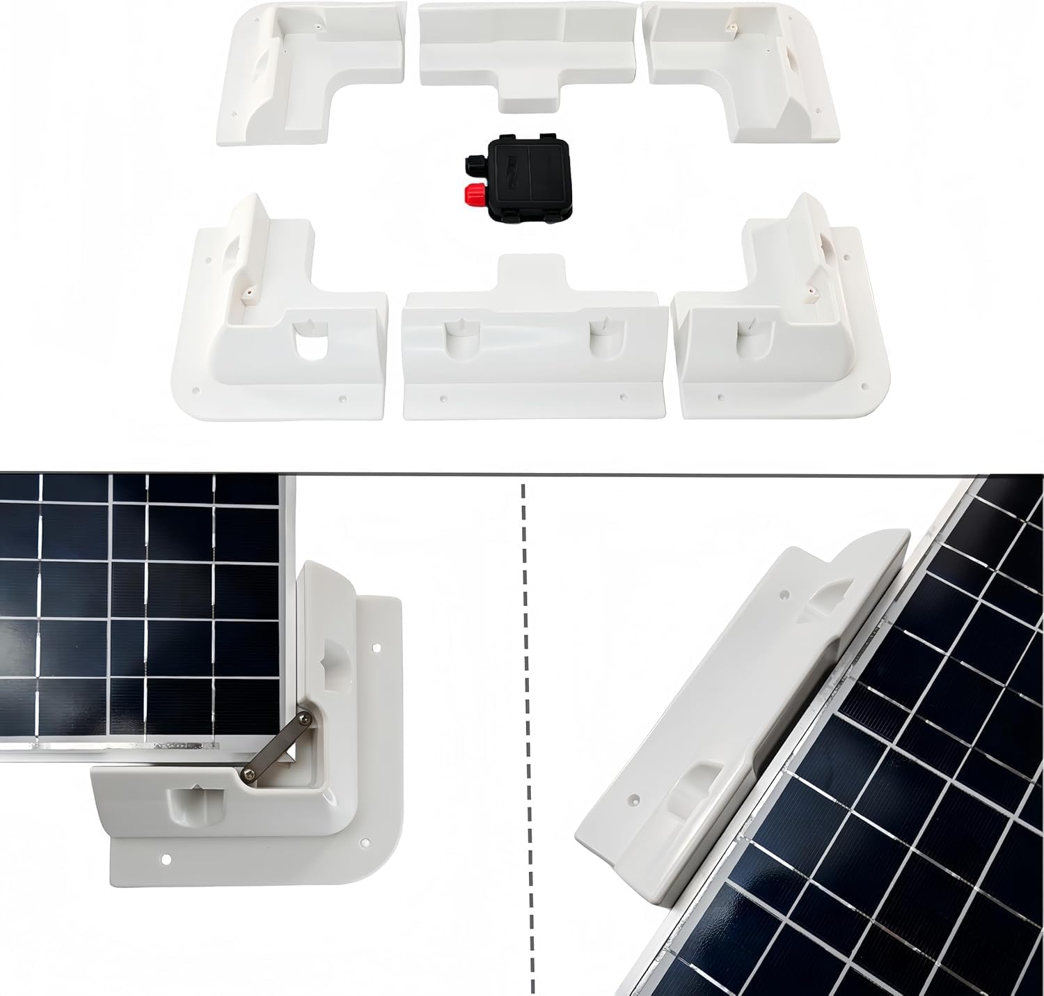🧰 Complete 7PCS Mounting Kit – Includes 4 corner brackets, 2 side brackets, 1 IP68 waterproof cable gland, all screws, and mounting pads. Everything you need for a stable solar panel setup — no missing parts.