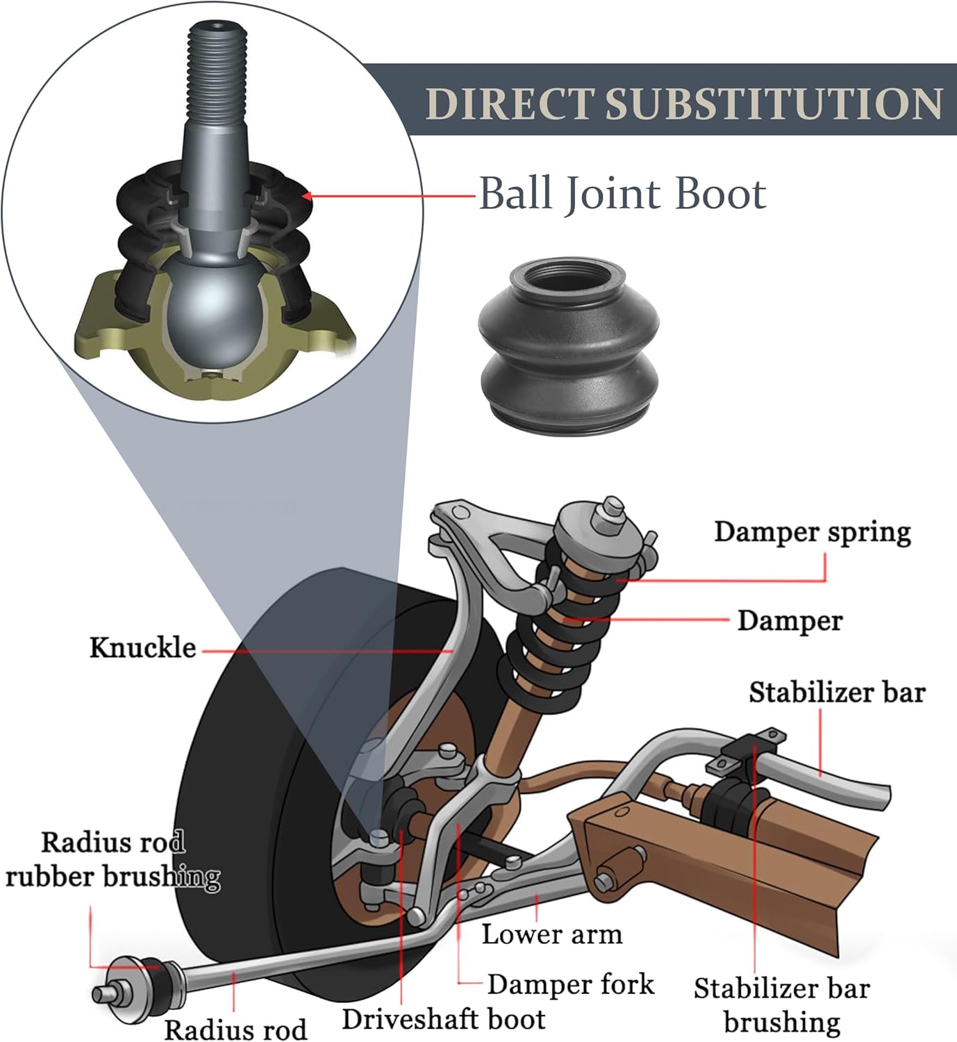 [Easy to Install] With this spherical universal joint dust cover kit, it is easy to replace the transmission shaft dust cover, just plug and play, and you can directly replace your original rubber dust cover track.