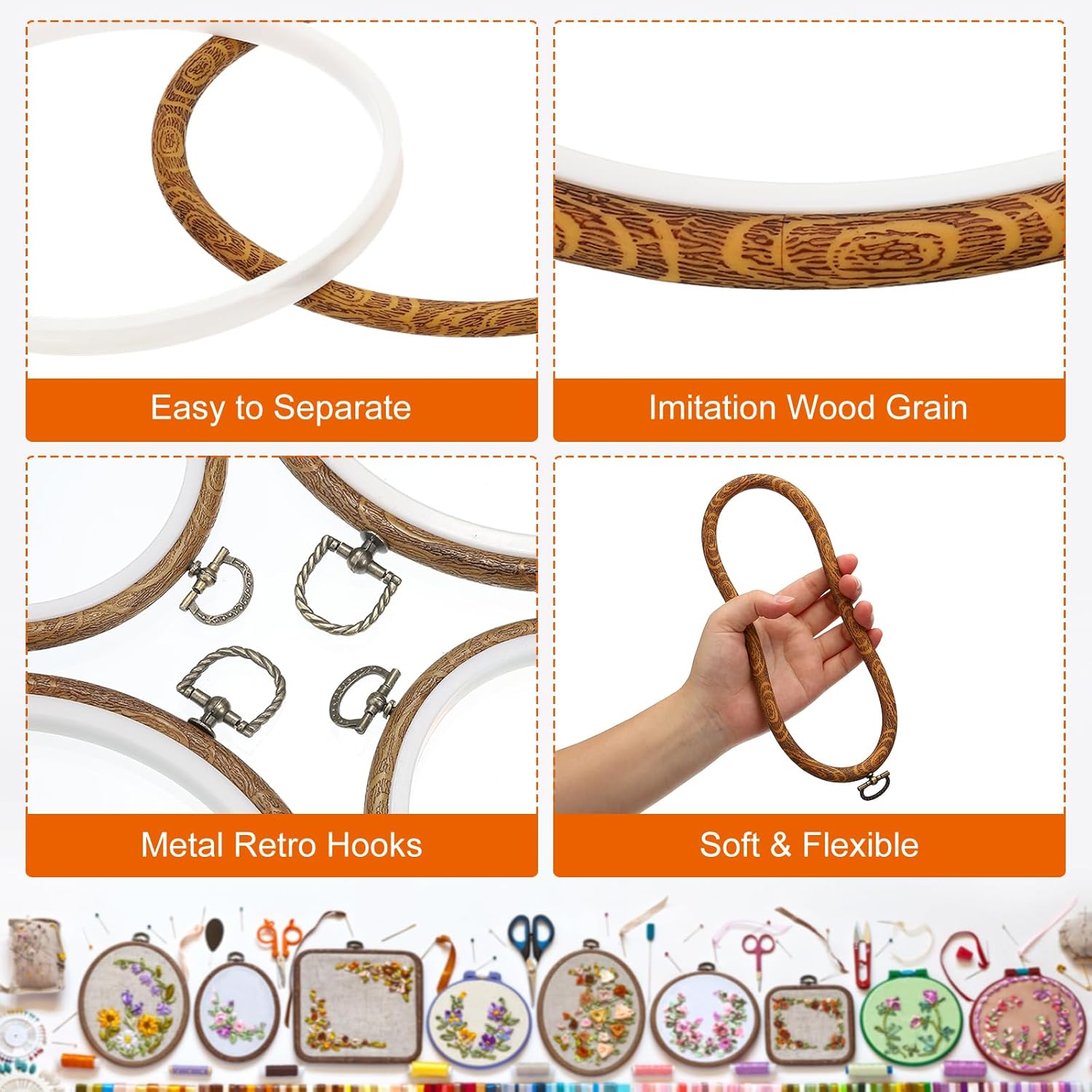 Advantage: Our cross stitch hoop frame is made of rubber plastic, durable and flexible, with good compression resistance, the outer resin hoop has good elasticity and can be easily twisted into an "8" shape to return to its original shape. Retro brass hanging ring with wood grain makes handcrafts more exquisite, anti-skid texture offers a comfortable grip. This embroidered hoop frame features vintage wood grain to add more charm to your embroidery creations.