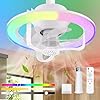 Socket Fan Light Small Ceiling Fan with Light and Remote 360° Rotating LED Ceiling Fan with 3 Wind Speeds, 2 Timer Mode Low Profile Ceiling Fan with Light 3 Color Smart Modern Ceiling Fan (socket fan)