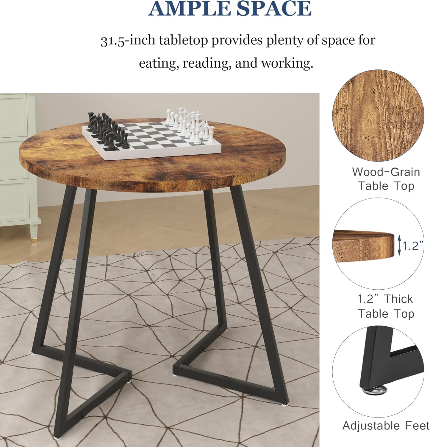 Lightweight & Stable-This round kitchen table set weighs 39 pounds gross and is very light. The 31.5 inch large tabletop can meet your daily dining needs. And the legs are also equipped with adjustable foot pads so that you can use them on different occasions without worrying about shaking.