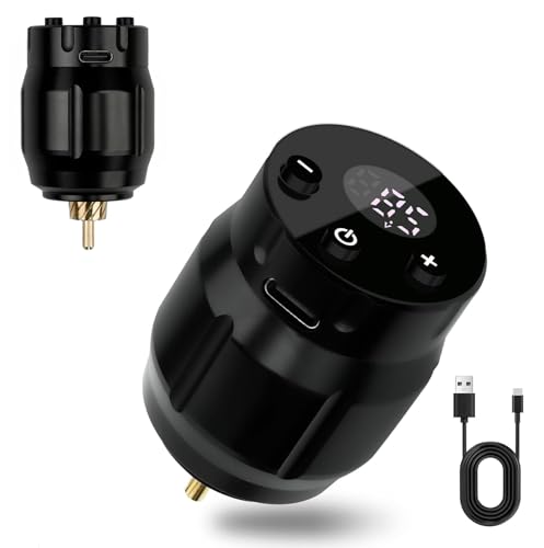 The MC-W1 Rechargeable Tattoo Machine Battery RCA CONNECTOR build inJump start mode and offers voltage outputs of 4V,5V6V, 7V, 8V, 9V, and 11V, 12V It charges via a DC5V/1A input using a TYPE-C port and has a 1500mAh battery. The device includes dual charge and discharge protection, with built-in over-surge protection and a control board that safeguards against short circuits, over-surges, and over-discharges. To operate, press the power button for 2 seconds to turn on the machine, and use the up/down buttons to adjust the voltage in a cycle from 4V to 12V. A 3-second press of the up/down button initiates a jump start. Upon activation, the machine quickly starts at 10V, then reverts to the last used voltage after 0.2 seconds. In sleep mode, the battery display appears 2 seconds after pressing the power button, with light indicators showing the remaining battery percentage (20%-100%). Press the power button again to resume voltage adjustment. During charging, the light indicator flashes and turns solid when charging is complete, entering "protection" mode. The battery, with a capacity of 1500mAh, charges fully in approximately 3 hours, providing up to 8 hours of work time at voltages below 8V. Designed primarily for rotary tattoo machines, the MC-W1 should not be used with coil machines and does not support simultaneous charging and operation. In case of short-circuit protection, simply plug the device into the charger to reactivate it.