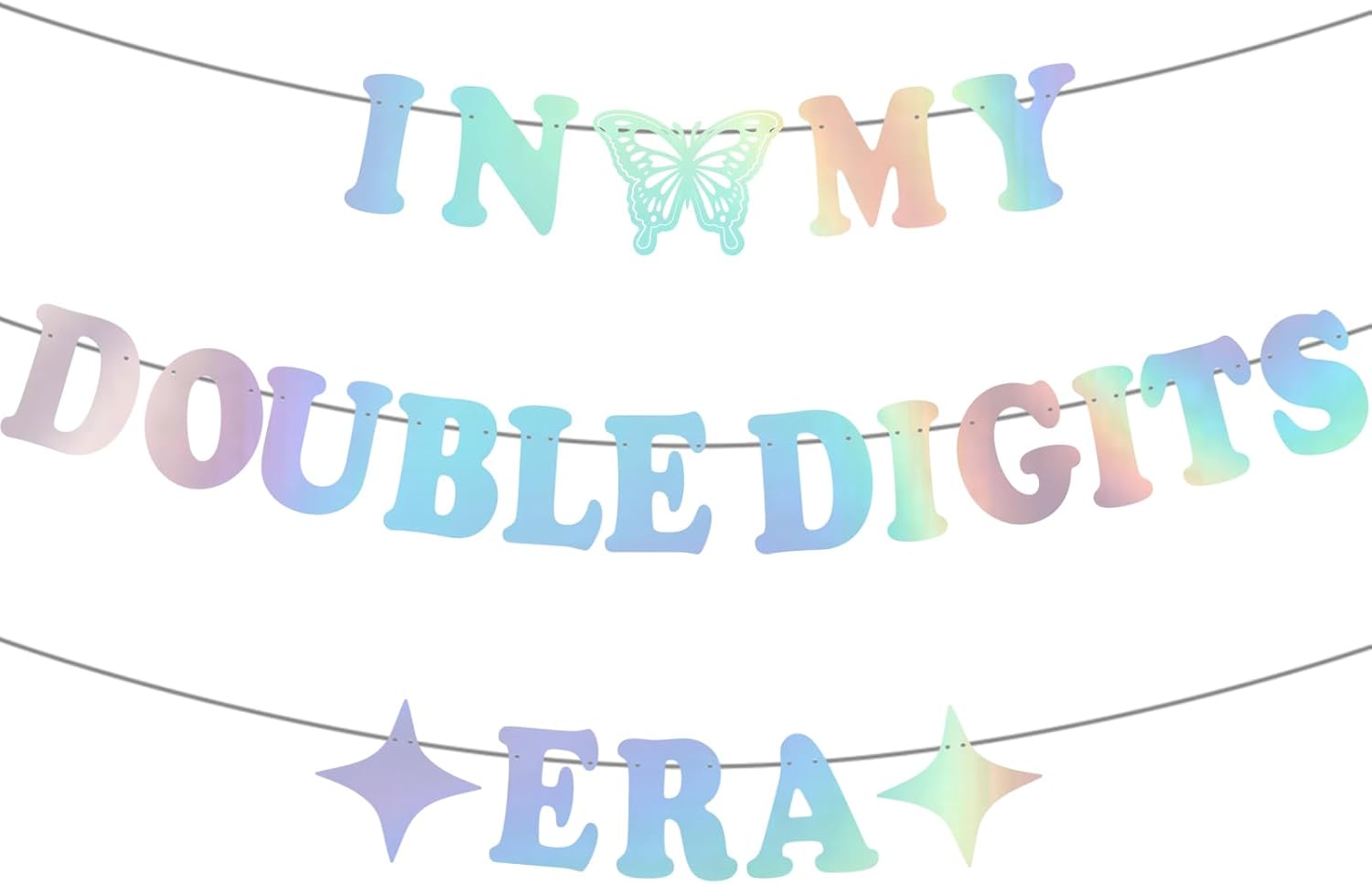 Generic In My Double Digits Era Banner- Iridescent, Happy 10th Birthday Banner, Glitter Popular Double Digits Banne for Girl Boy 10th Birthday Party Decorations Supplies