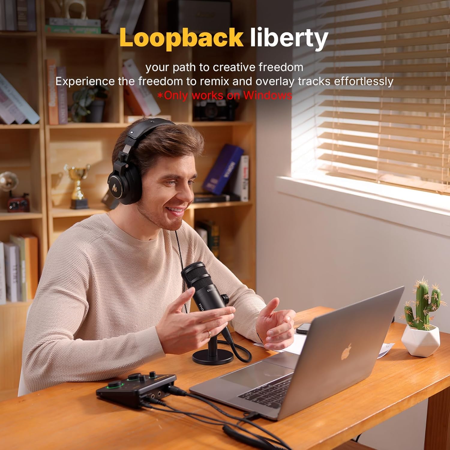 MAONO USB Audio Interface for PC: Interface with XLR Input 24-bit/192kHz Routing Software LOOPBACK ASIO Driver for Recording Music, Home-Studio, Guitar, Podcast, Streaming, DAW(PS22 Lite Black)