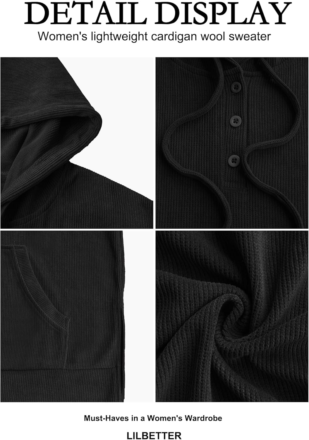 LILBETTER Womens Long Sleeve Pullover Hoodies Drawstring Sweatshirt Fall Knit Ribbed Tops with Pocket