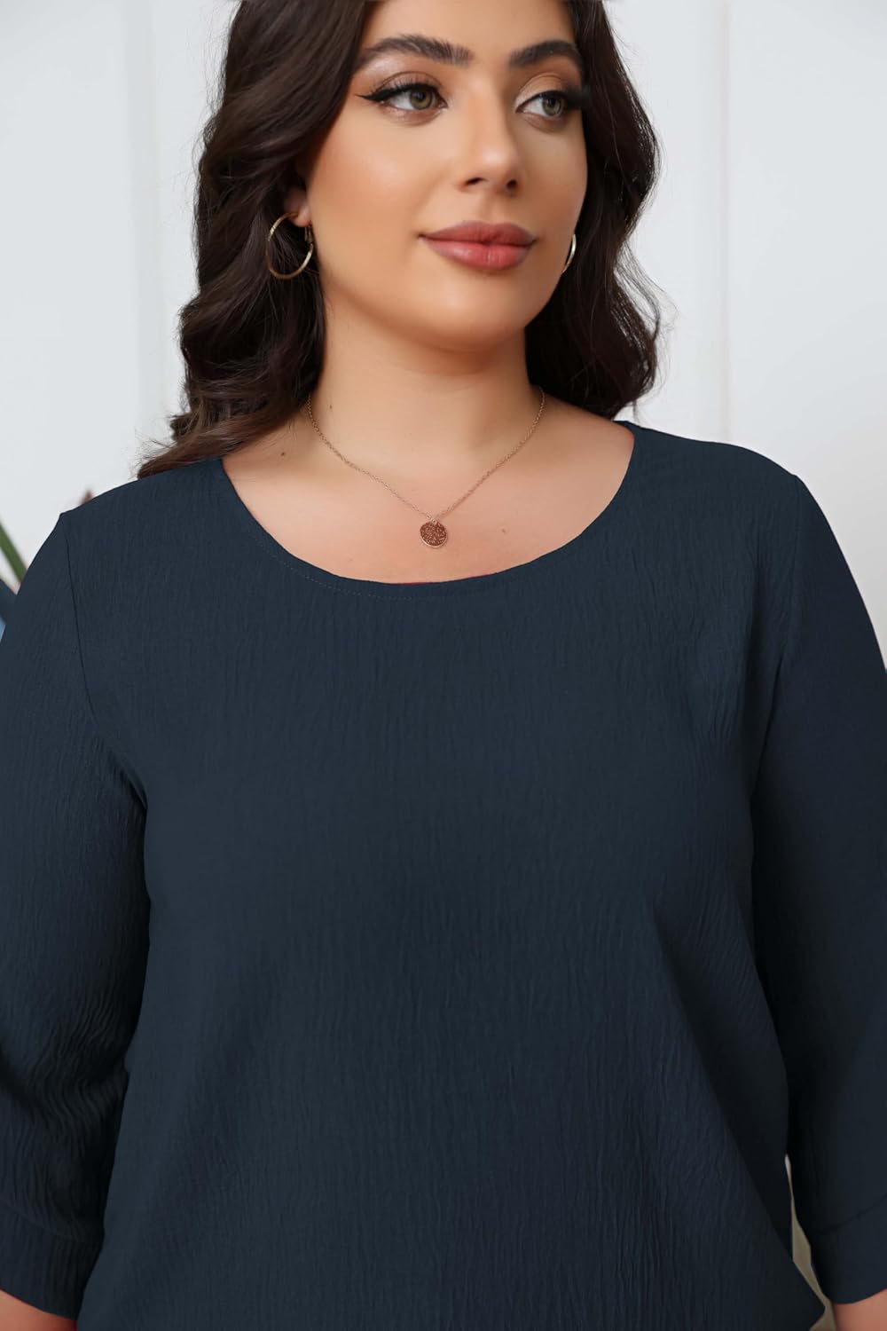 CARRROTMOB Plus Size Women's Summer Chiffon Blouses Bell Short Sleeve T-Shirts Casual Crew Neck Loose Flowy Plus Size Tops
