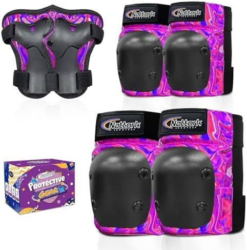 Nattork Knee Pads for Kids Youth Audlt,Knee and Elbow Pads with Wrist Guards 6 in 1 Protective Gear Set for Skateboard, Roller Skate, Inline Skates, Cycling and Scooter Boys Girls