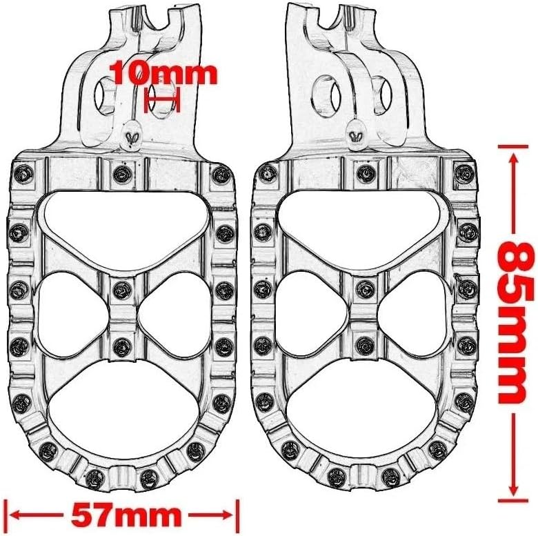 Universal Motorcycle Foot Pedal.The motorcycle pedal adopts an anti-slip design, which increases the friction of the contact surface, has strong grip, stable performance, and provides you with a comfortable footrest.The pedal provides friction and control, allowing your feet to step firmly on the ground without sliding, so that you will not slip on rainy days and muddy roads.The pedal disperses the impact force and reduces the pressure on your feet.It does not increase the weight of the motorcycle, is durable and can be used for a long time, and the surface enhances friction and facilitates the driver to approach the pedal.The motorcycle footrest is wide, provides friction and control, allowing your feet to step firmly on the ground without sliding, and the pedal platform disperses the impact force and reduces the pressure on your feet.Material: Aluminum Alloy,Color: ,The motorcycle pedal adopts a meticulous anti-slip design, which increases the friction of the contact surface, does not take up space, and is easy to use.If you have any questions about the motorcycle pedal spikes, please leave us a message by email. We will give you a satisfactory answer.