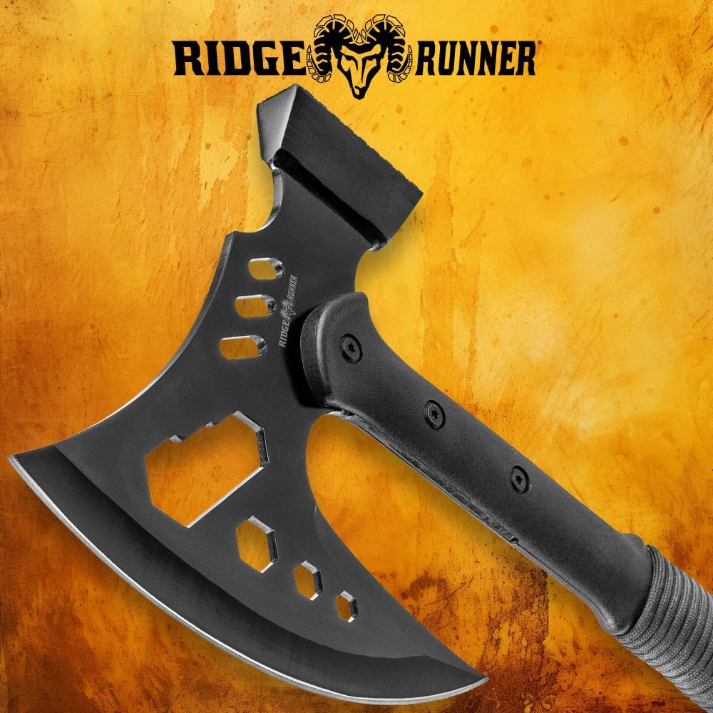 RIDGE RUNNER Martillo y Hacha Multiherramienta Táctico con Funda - Cabezal de Acero Inoxidable, Tiene Llaves Hexagonales Integrados, Mango de TPU Envuelto en Paracord - Perfecto para Equipo de Supervivencia y Camping - Longitud 18"