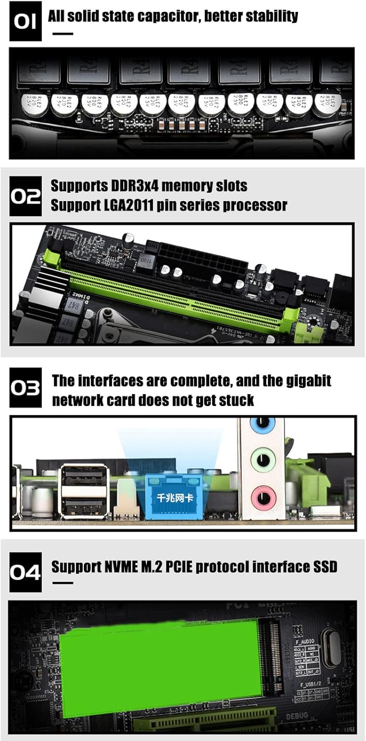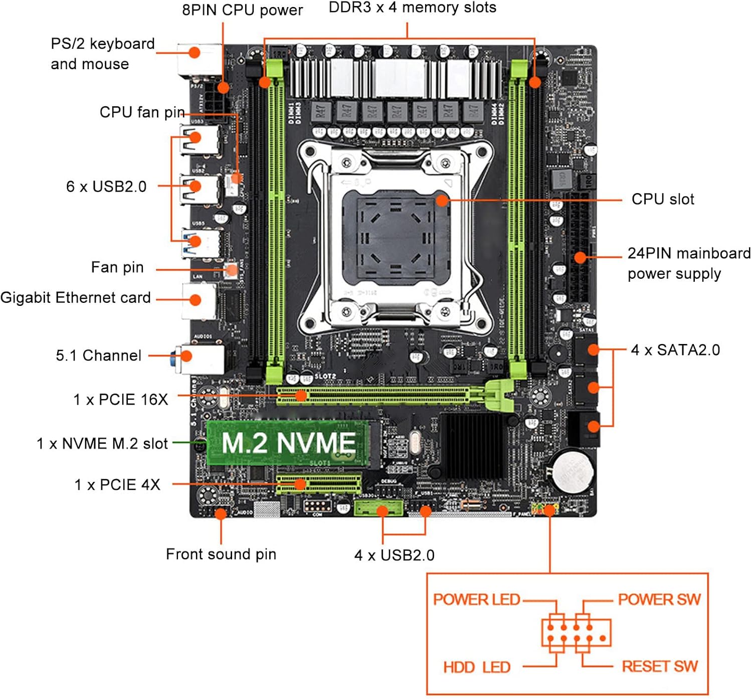 Placa Base de Escritorio Zyyini X79MS, Placa Madre LGA 2011 4 Socket, 4 DDR3 64GB PC, Placa Madre M.2 NVME Port M ATX para Juegos, 4 SATA2.0, 10 USB2.0, PCI E 16X